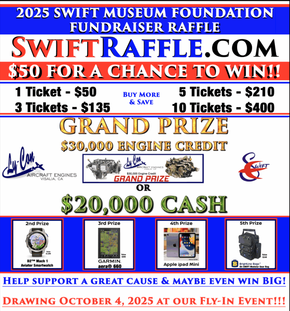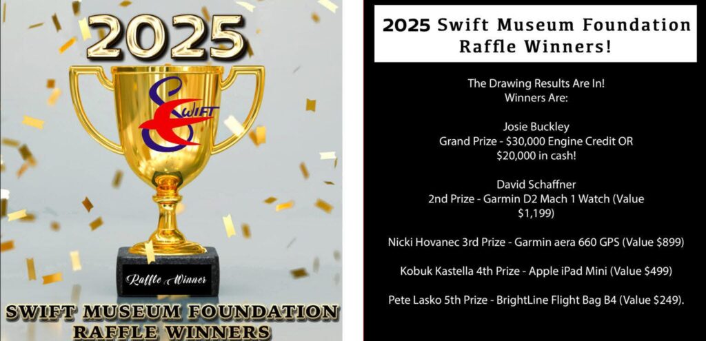 Filed Under: News, News from the Board of Directors, Swift Events Tagged With: EVENTS, FLYIN, RAFFLE WINNERS, SWIFT, Swift airplanes, Swift National, Swift Raffle
